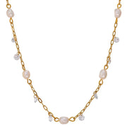 This collar blends a luminous natural pearl with brilliant cubic zirconia. It captures a delicate and celebratory light. Feel effortlessly graceful and beautifully radiant. An ideal piece for special moments or as a wedding gift. Adorn your luminous moment.
