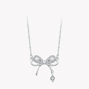 Made from high-quality 925 sterling silver, the Timeless Bowknot Necklace promises long-lasting durability and shine. The bowknot is adorned with clear cubic zirconia, meticulously set to reflect light and enhance its brilliance. This timeless design is a masterpiece of craftsmanship, offering both elegance and comfort.